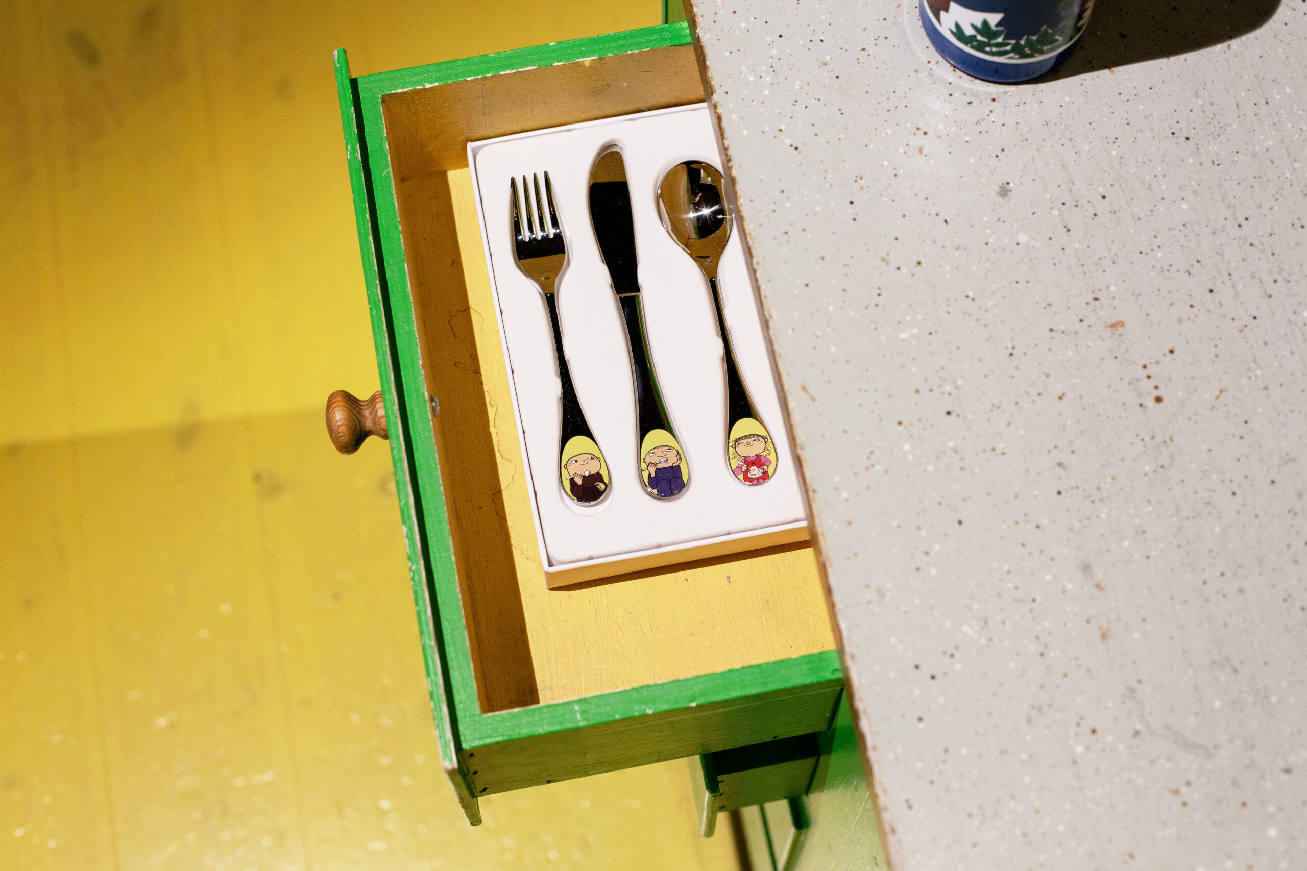 Besticksetet består av kniv, gaffel och sked tillverkade i slitstarkt 18/10 rostfritt stål. De är designade för små händer och levereras i en färgglad pappförpackning.