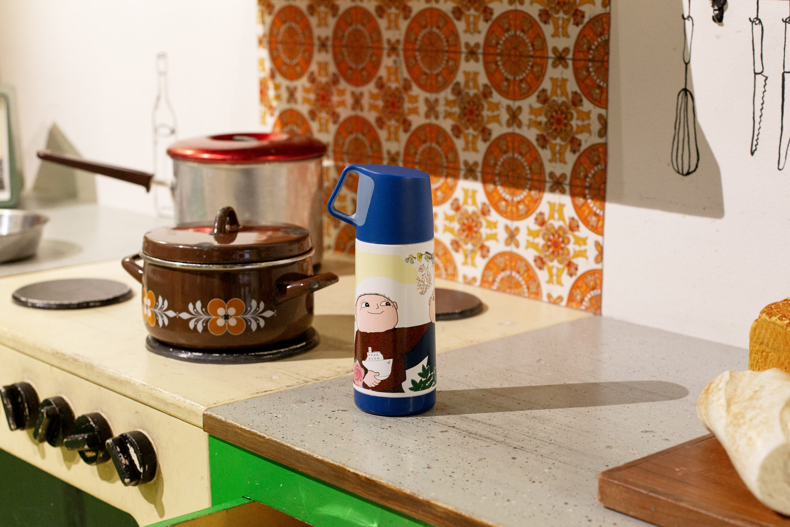 Termosen med Alfons och Viktor-motiv och är tillverkad i rostfritt stål för att hålla drycker varma eller kalla. Termosen har en praktisk plastmugg med gummerat handtag och ett tättslutande lock som gör den perfekt för utflykter.