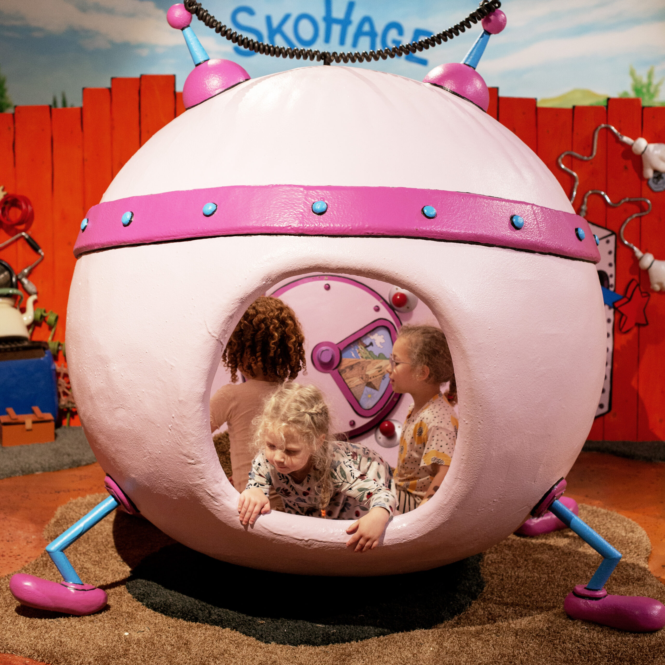 Forestil dig et eventyrlandskab, hvor du træder direkte ind i nogle af vores mest elskede børnebøger. Kig ind i Alfons Åbergs køkken, hop i høet hjemme hos Pettson & Findus, tag en tur med Bamses båd Viktoria, rejs tilbage til vikingetiden med Halvdan og Meia, besøg Mumidalen, lær den almindelige, men usædvanlige pige Funny og hendes ven Humlan Djojj at kende. Der er noget for ethvert barn her!